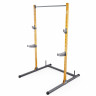Стойка для штанги, тяга сверху и снизу DFC Y-GYM - многофункциональная стойка для домашних тренировок. Серия Y-GYM – это тренажеры в современном дизайне, где динамичный желтый цвет гармонично сочетается с элегантным черным. Продуманная геометрия и контрастное цветовое решение позволят тренажеру гармонично вписаться в любую комнату и стать ярким акцентом вашего интерьера. Это идеальное решение для тех, кто ценит функциональность и эстетику в каждой детали своего дома. Устойчивое основание стойки для приседаний из высокопрочной профильной трубы 50 х 45 х 1,5 мм выдерживает динамическую нагрузку до 250 кг (динамическая нагрузка – нагрузка на элементы конструкции в движении). Подходит для выполнения полного спектра упражнений со штангой: приседания, жим, различные виды тяги и другие. Две пары держателей под штангу стойки для жима легко установить на разной высоте (7 уровней). В качестве нагрузки для верхней и нижней тяги используются диски Ø25 мм. Максимальная нагрузка на тягу до 80 кг. Фиксация с помощью замков, идущих в комплекте. Для хранения дисков предусмотрены 4 держателя по углам тренажера (Ø25 мм). Нескользящие ножки надежно устанавливаются на полу и не царапают поверхность.